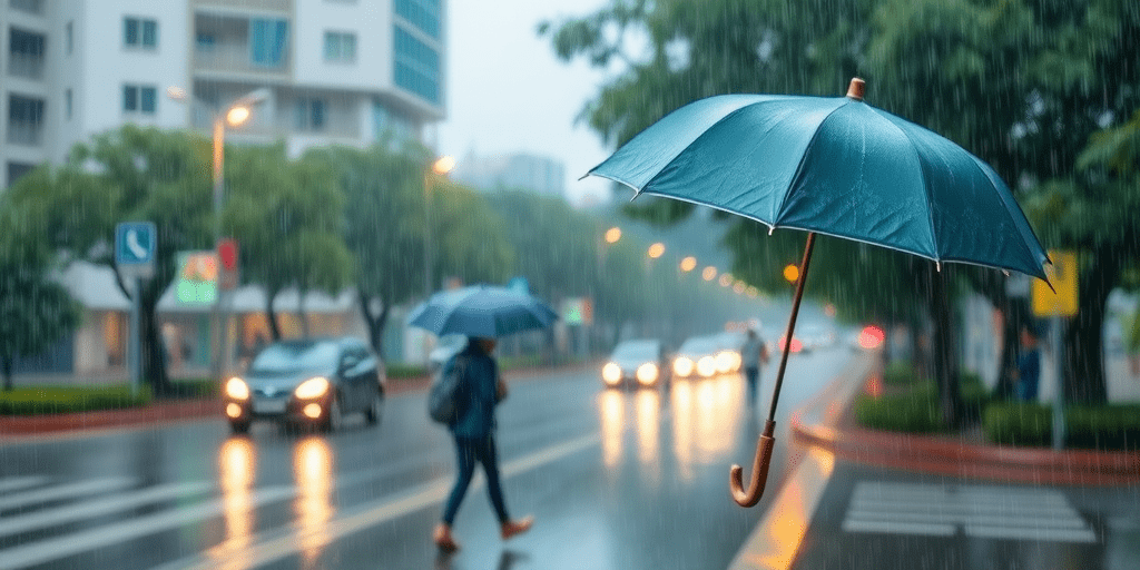 "비와 습도를 고려해 가볍고 방수 기능이 있는 우비와 우산을 준비하세요. 긴팔 블라우스와 얇은 니트 또는 가벼운 재킷으로 레이어드하면 쾌적합니다. 편안한 긴 바지 또는 레깅스와 방수 신발 또는 부츠를 신으면 좋아요. 머리에는 방수 모자나 우산이 필수입니다."