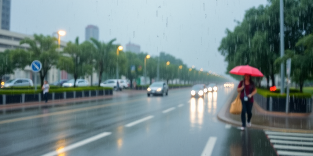 "오늘은 비와 바람이 있으니 가볍고 방수 기능이 있는 자켓이나 우븐 재킷이 좋습니다. 긴 소매 셔츠와 면바지, 방수 신발을 매치하면 편하면서도 실용적입니다. 레이어드하여 체온 조절이 가능하도록 준비하세요."