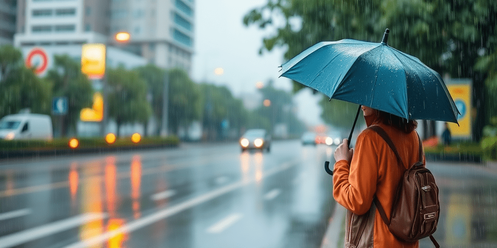 "비 오는 날씨에는 방수 재질의 롱 코트나 우븐 자켓이 좋습니다. 레인 부츠와 방수 신발, 우산을 함께 착용하면 스타일과 실용성을 모두 챙길 수 있습니다. 편안한 긴 팔 블라우스와 레인 팬츠도 좋은 선택입니다."