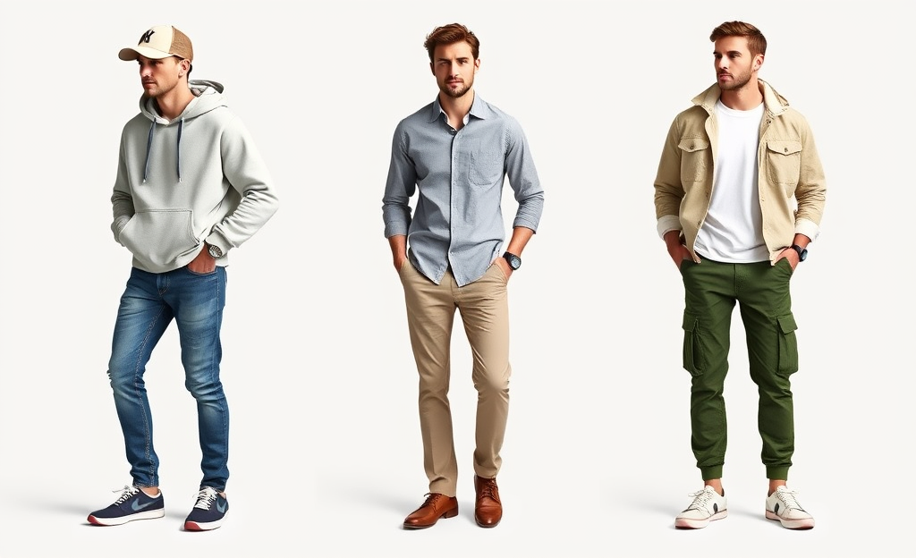 *Lightweight jacket, T-shirt, cargo pants, sneakers for outdoor comfort.