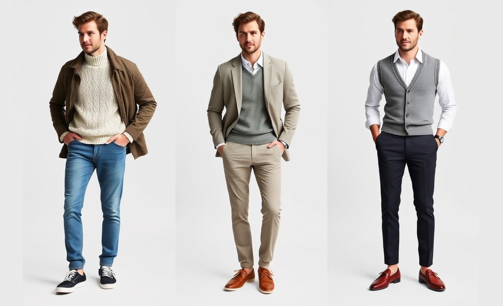 *Sweater vest over a collared shirt with tailored trousers and loafers, perfect for a polished appearance.