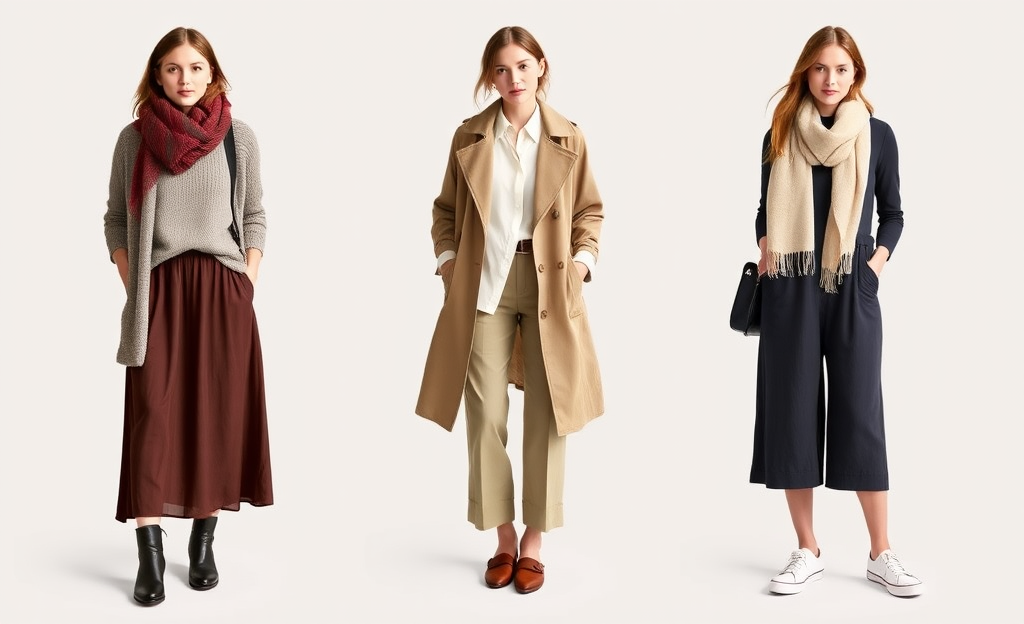"흐린 날씨에는 레이어드가 좋은 선택입니다. 얇은 니트와 가디건 또는 얇은 트렌치 코트와 함께 긴 스커트나 팬츠를 입으면 세련되면서도 편안한 스타일을 연출할 수 있습니다. 바람이 부는 점을 고려해 모자 또는 스카프를 활용하는 것도 좋습니다."