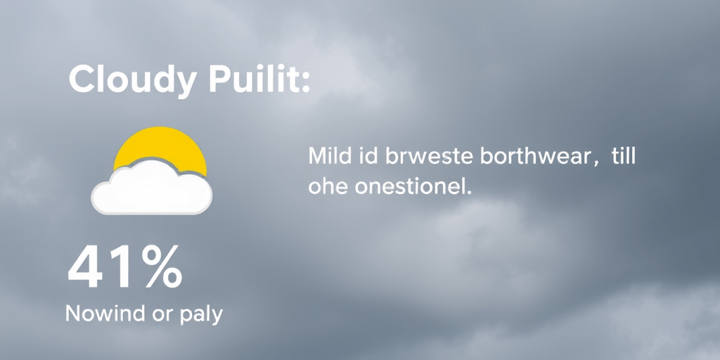 "오늘은 구름이 끼어 있고, 습도는 41%로 쾌적한 날씨입니다. 기압은 1024 hPa로 안정적이며, 바람은 서북서쪽에서 1 m/s의 약한 바람이 부는 날씨입니다. 일출은 7:13, 일몰은 17:20로 긴 낮 시간을 즐기기에 좋습니다. 외출 시 가벼운 겉옷이나 긴팔 옷을 준비하는 것이 좋겠어요."