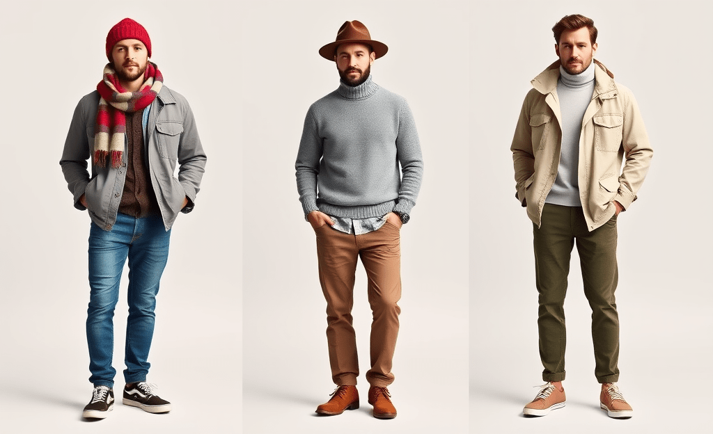 *Thin jumper layered over a shirt, complemented with a hat and chinos.