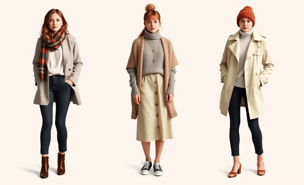 *Light trench coat over a turtleneck and slim pants, accessorized with a beanie.