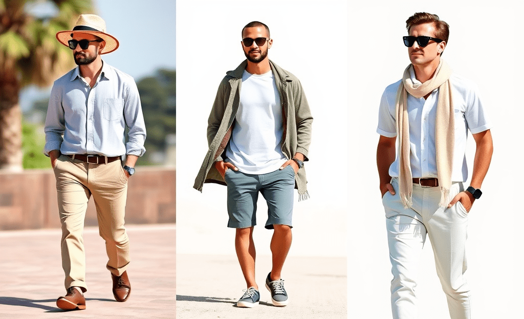 *Polo shirt with linen pants, accessorized with sunglasses and a light scarf for a sophisticated summer vibe.