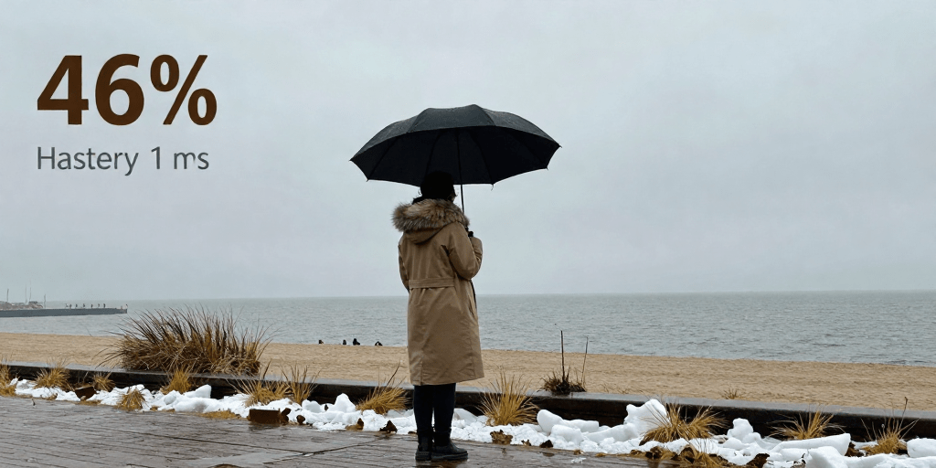 "오늘은 흐린 하늘과 함께 습도 46%, 기압 1029 hPa가 유지되어 쾌적한 겨울 날씨입니다. 약한 동풍이 불며 바람은 1 m/s로 미풍 수준입니다. 외출 시 가볍게 따뜻한 옷을 챙기면 좋으며, 햇살이 약간 기대되니 적당한 겹옷을 추천합니다."
