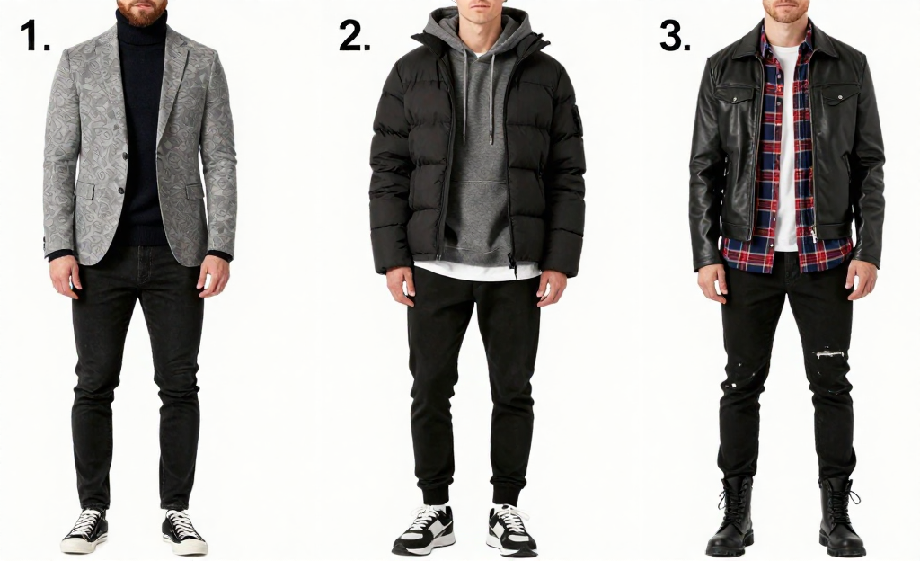 *Slim-fit blazer with a turtleneck, dark jeans, and stylish sneakers for a polished look.
