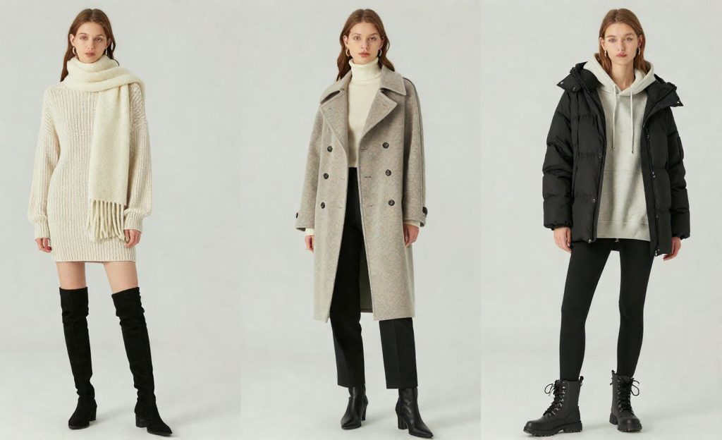 "따뜻한 니트 원피스와 코트, 목도리와 장갑으로 포근한 겨울 스타일을 추천합니다. 힐이나 부츠와 함께 매치하면 세련된 외출룩을 연출할 수 있으며, 레이어드로 보온성을 높이세요."