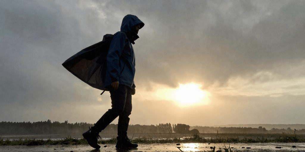 *Thin sweater under a rain-resistant windbreaker, matched with joggers and waterproof boots for a relaxed style.